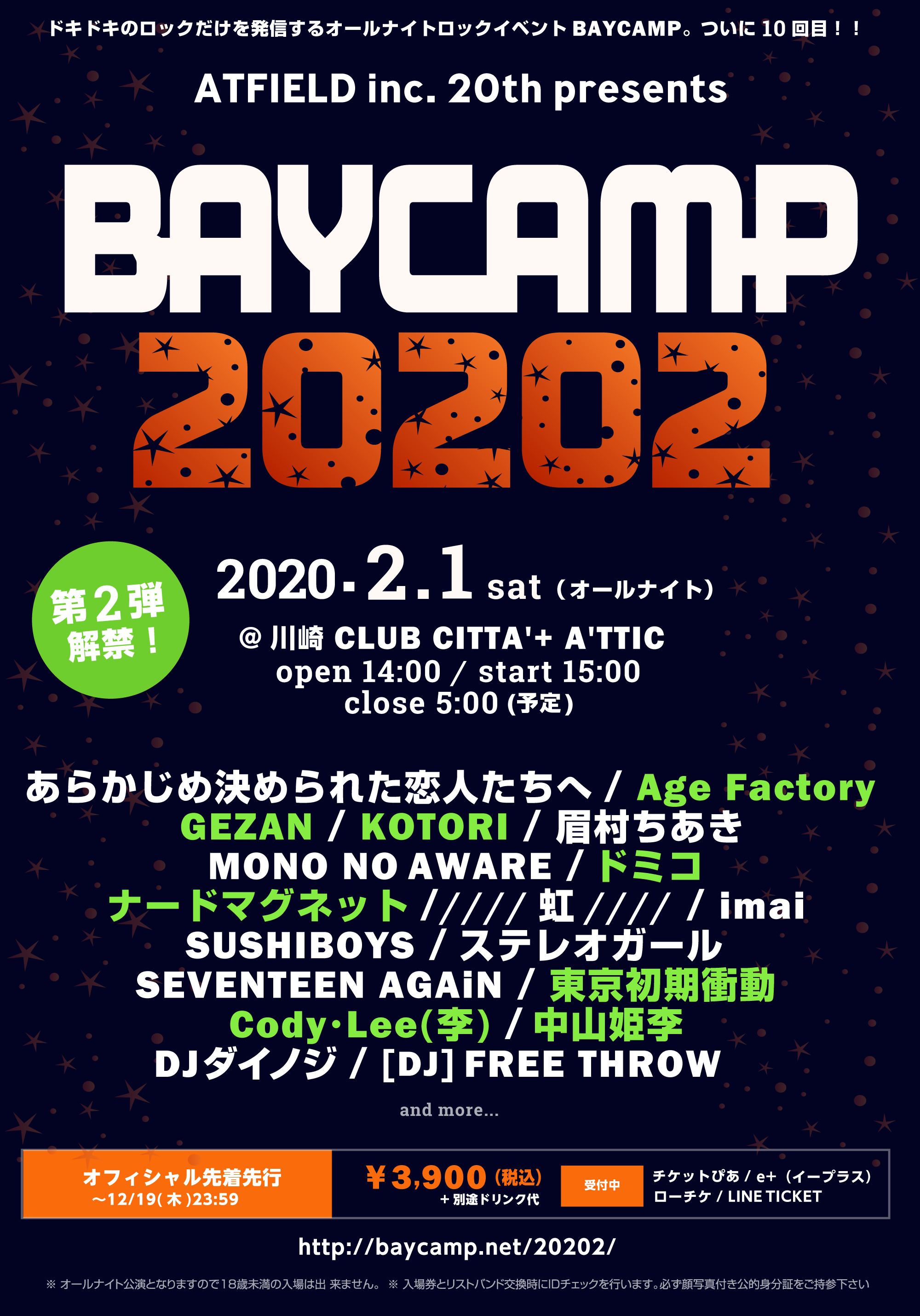 ATFIELD inc. 20th presents BAYCAMP 20202 出演アーティスト第二弾発表!!