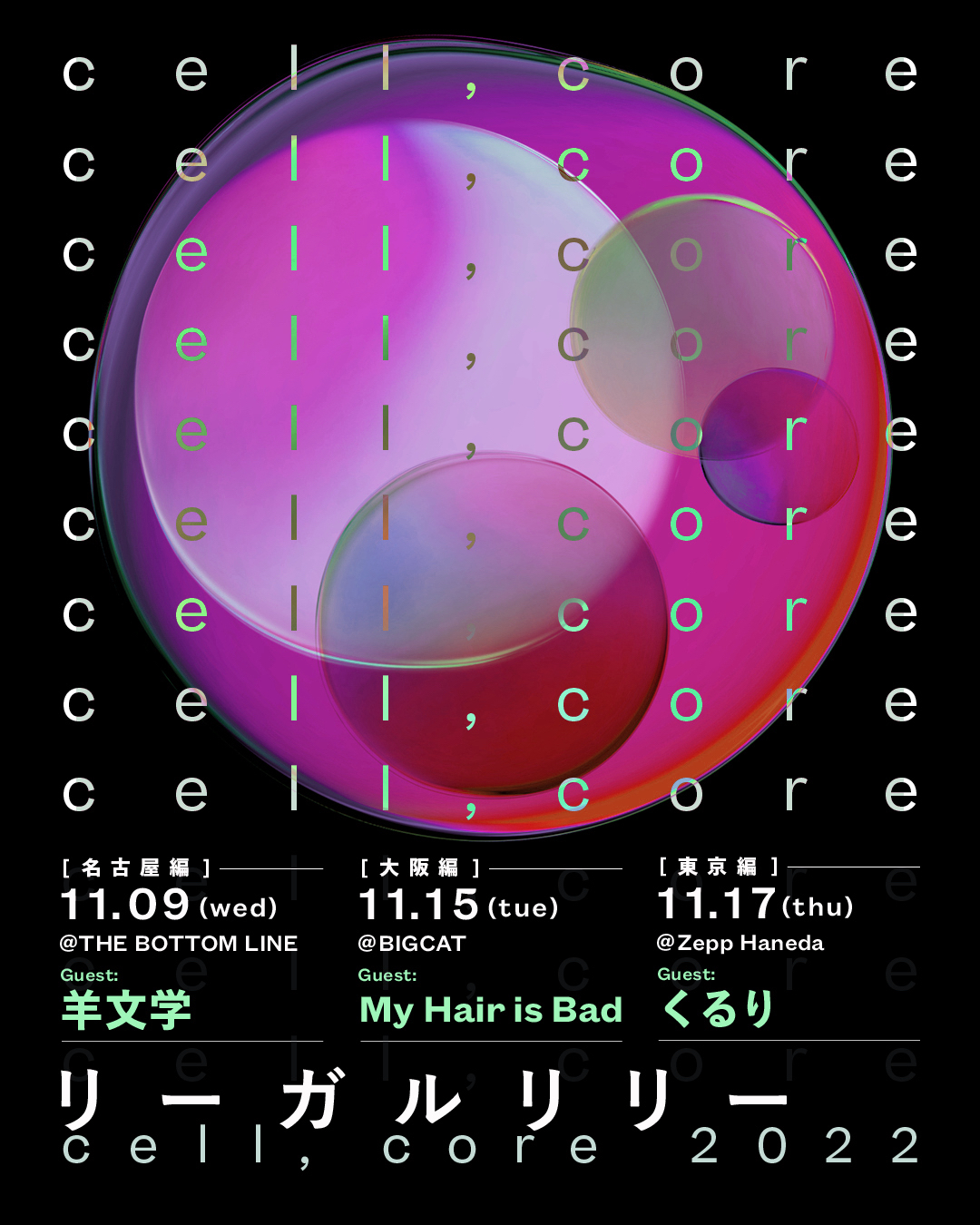 リーガルリリーが今年の11月に東名阪の3箇所で開催する2マン企画『cell,core 2022』のゲス