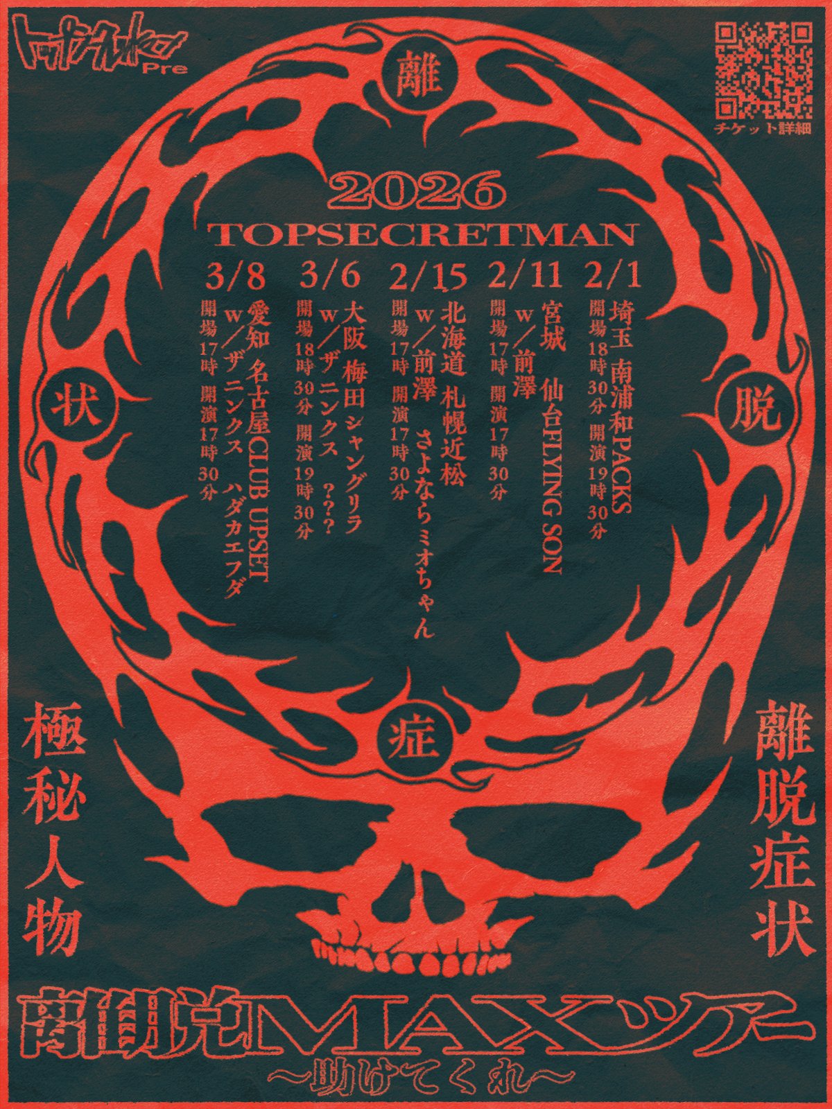 トップシークレットマン春の対バンTOUR2026 「離脱MAXツアー 〜助けてくれ〜」ゲスト解禁&一般発売開始!!!
