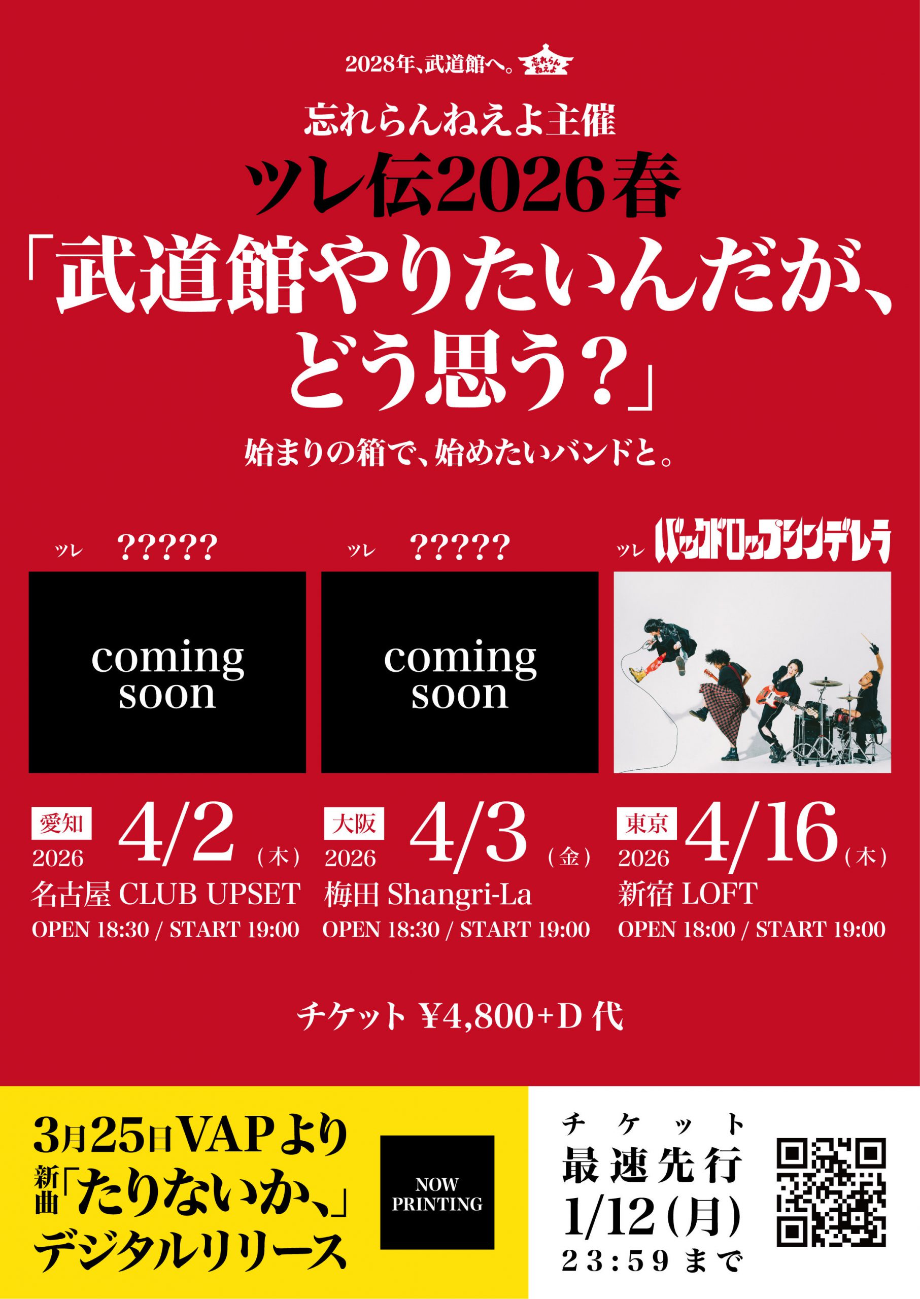 忘れらんねえよ主催 ツレ伝2026春 ~武道館やりたいんだが、どう思う?~ ツレ第一弾解禁!!